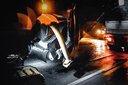 Nach der Landung des letzten Flugzeuges konnten die Arbeiten an der Piste beginnen. Vorgängig wurden sämtliche Geräte und Maschinen bereitgestellt, um raschmöglichst, nach Pistenfreigabe durch den Ramp Control mit den Arbeiten beginnen zu können. Die Beleuchtungen mussten im jeweiligen Arbeitsabschnitt installiert werden, parallel dazu starteten bereits die Belagsfräsen mit dem Ausbau des alten Pistenbelags. Beim Ersatz der Tragschicht wurden zwei Grossfräsen mit 2,20 m Fräsbreite sowie eine Kleinfräse eingesetzt. Mit 25 Lastwagen wurde das Fräsgut ins Belagswerk abtransportiert. Sobald die eine Pistenhälfte auf einer Länge von ca. 175 m fertig gefräst und die Nachverdichtung der Planie abgeschlossen war, wurde die Tragschicht mit zwei Belagsfertigern auf eine Einbaubreite von je 7,50 m eingebaut. Um sicherzugehen, dass bei einem eventuellen Ausfall des Belagslieferwerks die Piste am Morgen trotzdem für den Flugbetrieb uneingeschränkt zur Verfügung stehen würde, bestand die Herausforderung in der Disposition der Arbeitsabläufe darin, immer genügend vorproduziertes Mischgut, sei es im Verladesilo im Belagswerk oder auf den Lastwagen, vorrätig zu haben, um die offenen Fräsflächen mit neuem Belagsmischgut schliessen zu können.